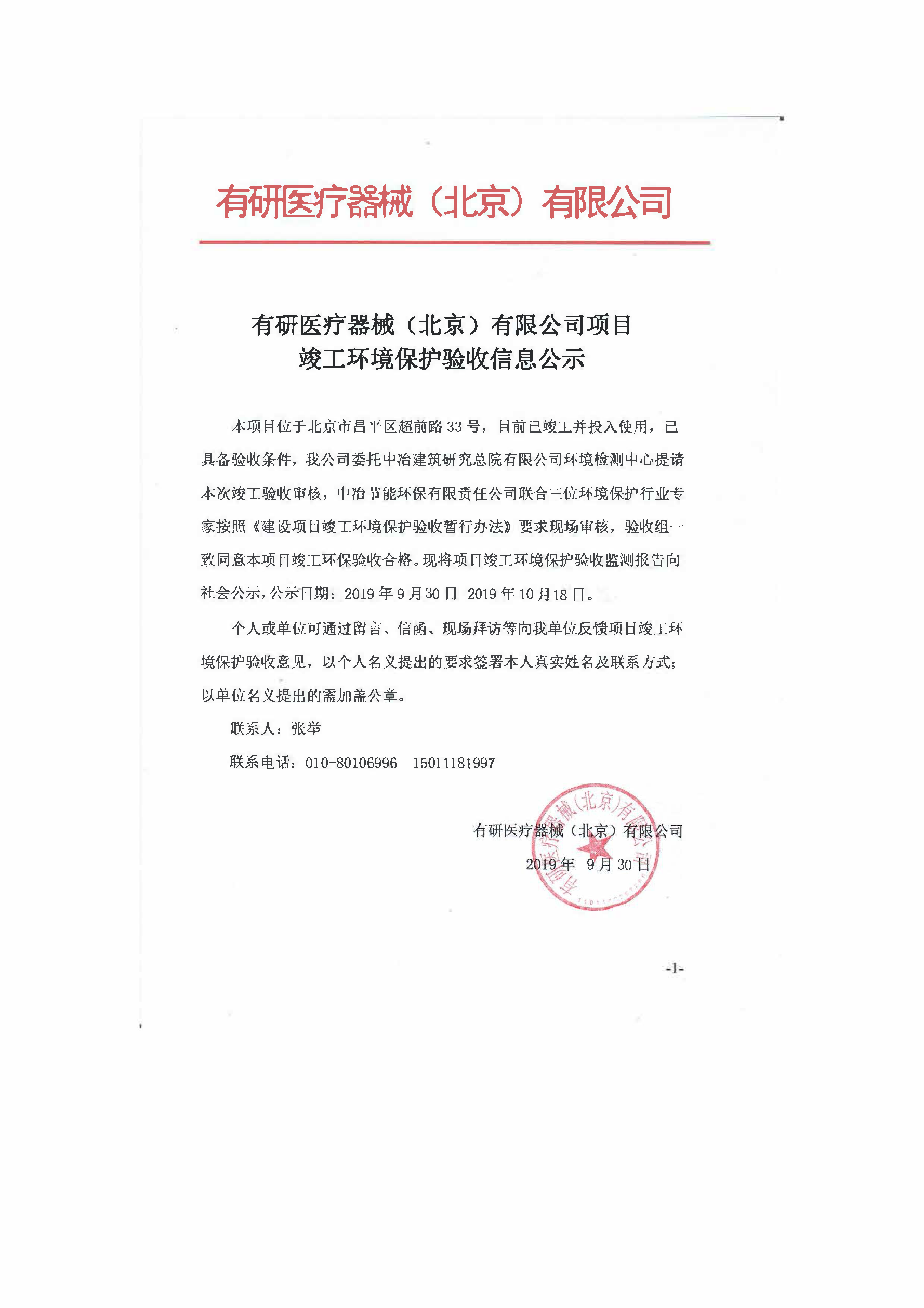 有研醫(yī)療器械(北京)有限公司項(xiàng)目竣工環(huán)境保護(hù)驗(yàn)收信息公示...